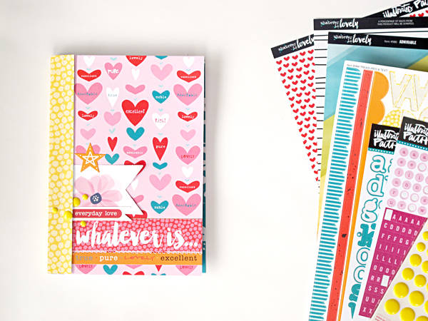 I ended up cutting apart the tip in so I could fit all of the words and added some adorable transparent heart stickers from the Bright and Brave washi pad.