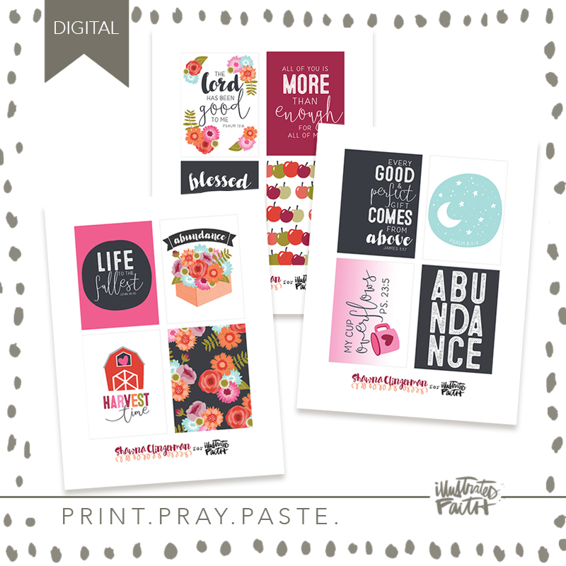 Print out this adorable print, pray, paste designed by Shawna Clingerman as a fun tool to illustrate your faith! These cards are perfect for tip-ins, pocket pages, or Project Life scrapping!