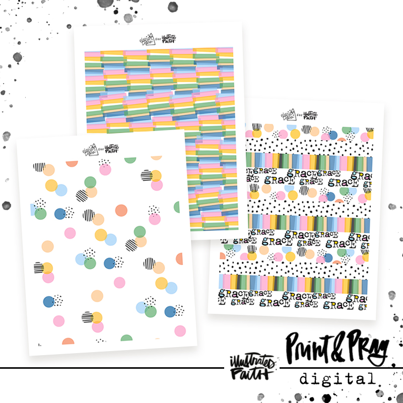 Print out these patterned papers designed by Elaine Davis as a fun tool to illustrate your faith! Use them just like you would scrapbooking paper to cut out hearts, make tip-ins, mat your photos, take notes on the back, create pages in flip books– the possibilities are endless!
