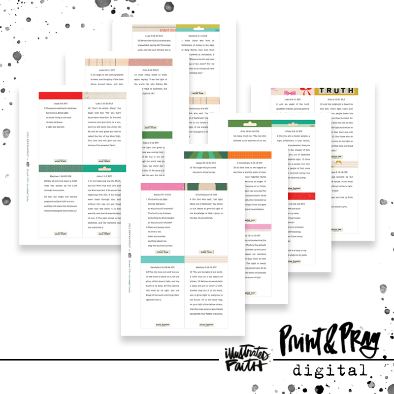 Note: There is one repeat scripture that snuck into the Advent kit (2 Corinthians 4:6). Jill has chosen to keep the repeat in these cards to match the kit, but used two different translations.