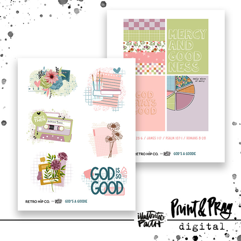God’s a Goodie is a sweet reminder that God’s goodness is layered, stitched, and stacked into every part of our lives. This two-page cut-apart set is packed with clusters, journal cards, and three coordinating patterned papers to bring it all together.