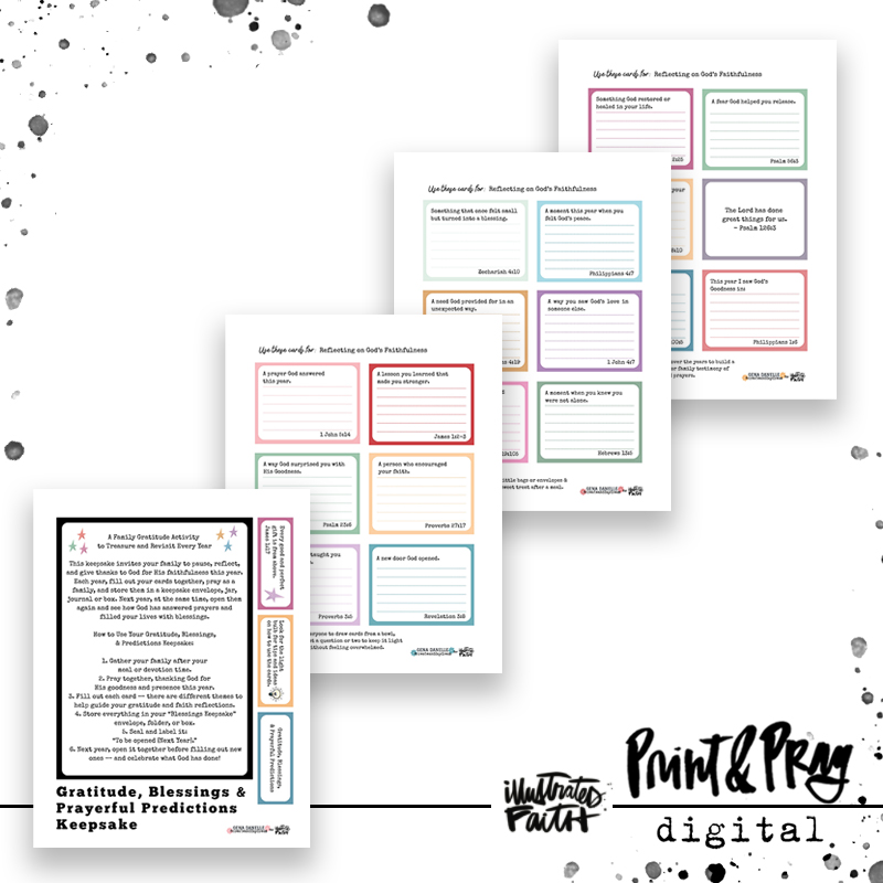 Introducing the “Gratitude, Blessings & Prayerful Predictions Keepsake.” This special keepsake invites your family and friends to take a moment to pause, reflect, and express gratitude to God for His faithfulness throughout the year. It also provides an opportunity to write down prayerful predictions for yourself and others for the coming year. Each year, gather together to fill out your cards, pray as a family, and store them in a keepsake envelope, jar, journal, or box. Then, the following year, revisit these treasures and see how God has answered prayers and filled your lives with blessings. It’s a simple yet meaningful way to celebrate His goodness and nurture your faith together with those you love.