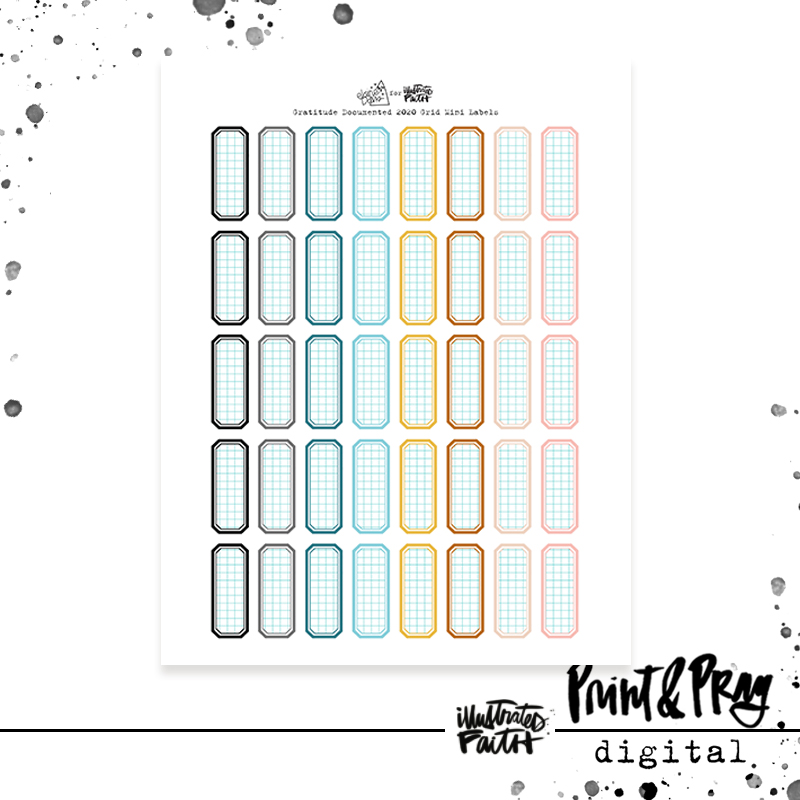 Print out this page of labels to add the perfect touch to all your pages! Use these as journaling spots, layering pieces, a landing spot for title words, fold over for a tab, & more! This set has a new twist: mini size for teeny tiny prayers & projects! Everyone needs a healthy stash of labels! These labels were created to coordinate with the Gratitude Documented 2020 kit.