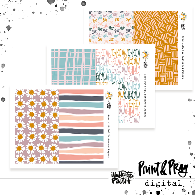 Print out these patterned papers designed by Abigail Clone as a fun tool to illustrate your faith! Use them just like you would scrapbooking paper to cut out hearts, make tip-ins, mat your photos, take notes on the back, create pages in flip books– the possibilities are endless!