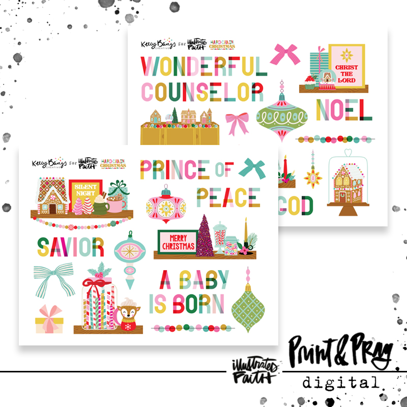 Enjoy a fun festive set to use in your Bible to celebrate the fun of the Christmas season! From the bright colors to the yummy food to the bold patterns, I know this set will make you smile as you’re getting creative with Jesus!