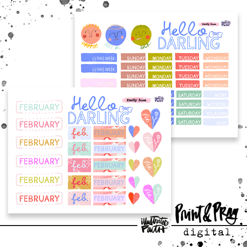 “Hello Darling” is a charming and whimsical February printable featuring a blend of sweet typography, soft pastel colors, and subtle heart accents, this design adds a personal touch to your love-filled pages. These versatile elements pair well with photos, stickers, and other embellishments in any journal.
