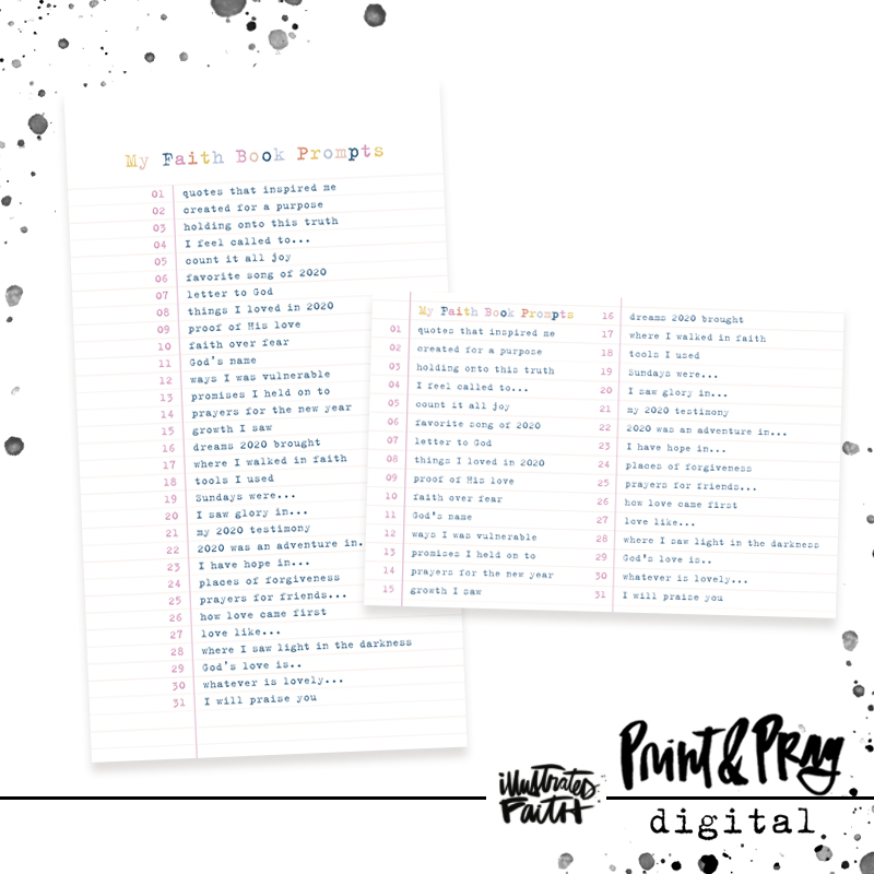 • (1) 8.5 x 11″ JPG file with the My Faith Book prompts