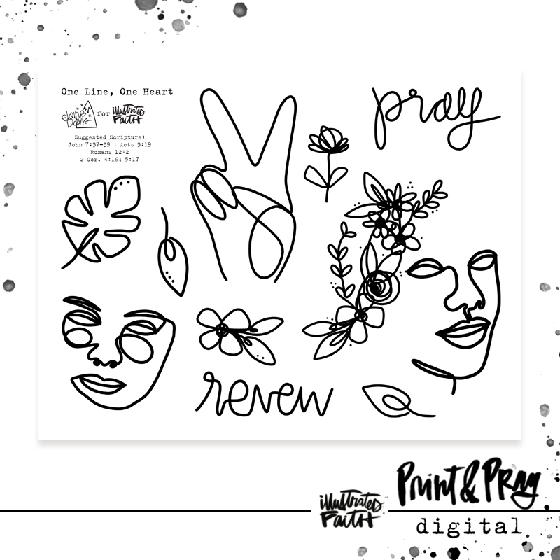 “Have you seen the current trend circulating called “one-line art” or “blind contouring?” Shanna challenged me to create some pieces in this style & I love how it came out. Inspired by this trend, I created each icon with one one line, not lifting my pen. I thought the flowers & vines could be used to create “hair” for the girls, along with paint & other mediums. I’m always so inspired when I see experimental art forms created by brave & curious women, & this was definitely an experiment for me to learn something new! -Elaine Davis