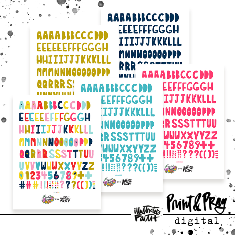 This set of alphas by Tamara Arcilla give me all the feels as a creative! They’re rainbow, they’re quirky, & they’re sweetly hand drawn! Give these alphas a try to give your Bible page titles a bit of fun & punch!