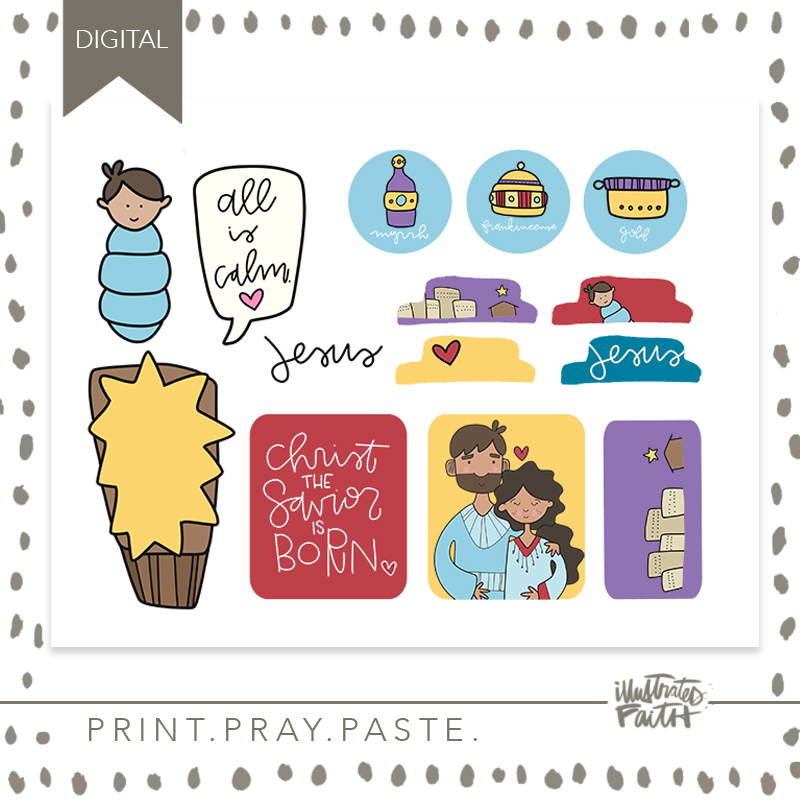 Bible journaling is such a powerful tool to share with your kids! Use these cute simple cut-aparts to teach your children about the birth of Christ in a fun way! Jess Robyn of Bumble & Bristle is the illustrator behind this adorable set! We love how her art speaks to kids & makes it fun & easy to teach them the stories of the Bible!