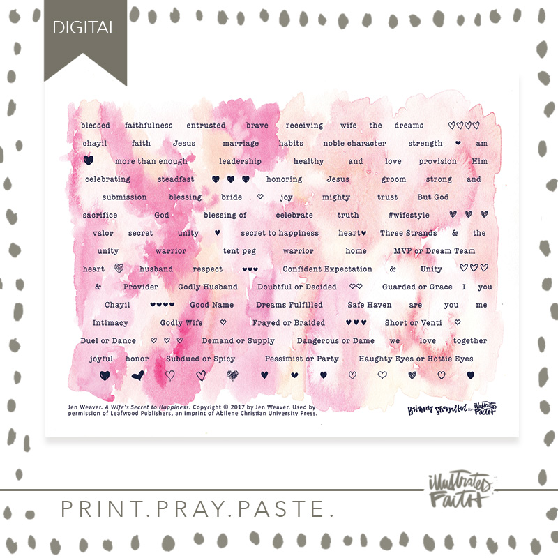 Purchase Jen’s book A Wife’s Secret to Happiness here through the Illustrated Faith affiliate link on Amazon!