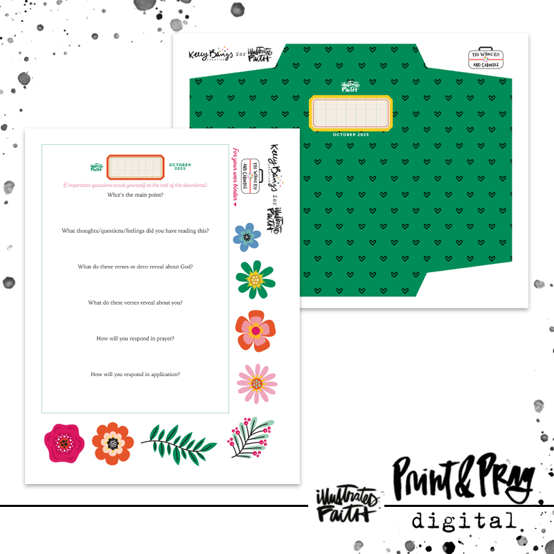 Now you have more goodies to add to your stash each month as you work your way through the monthly Illustrated Faith Devotional. This kit will give you color palettes, labels, tags, tabs, cute memos for notes and even an easy DIY envelope to corral all your ephemera bits!