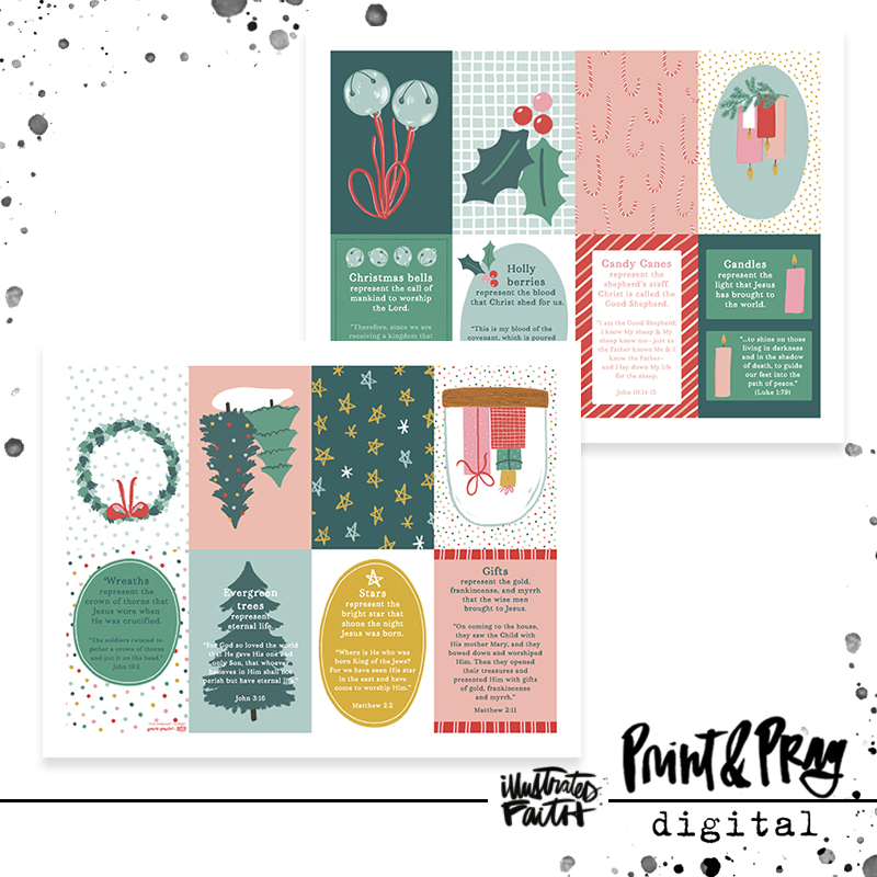 Lights. Trees. Stars. Bells. Ever wonder what all these Christmas symbols might mean? Christmas decorations everywhere are a huge part of celebrating Christmas. Many traditional decorations can help us get in touch with the true reason for the season, allowing them to help us elevate Jesus Christ in our Christmas celebrations as Christians have done for centuries. These cards featuring adorable illustrations of common Christmas symbols can be used as gift tags and cards, in your decorating, journaling or scrapbooking projects, and to teach your family and friends about the true meaning of Christmas.