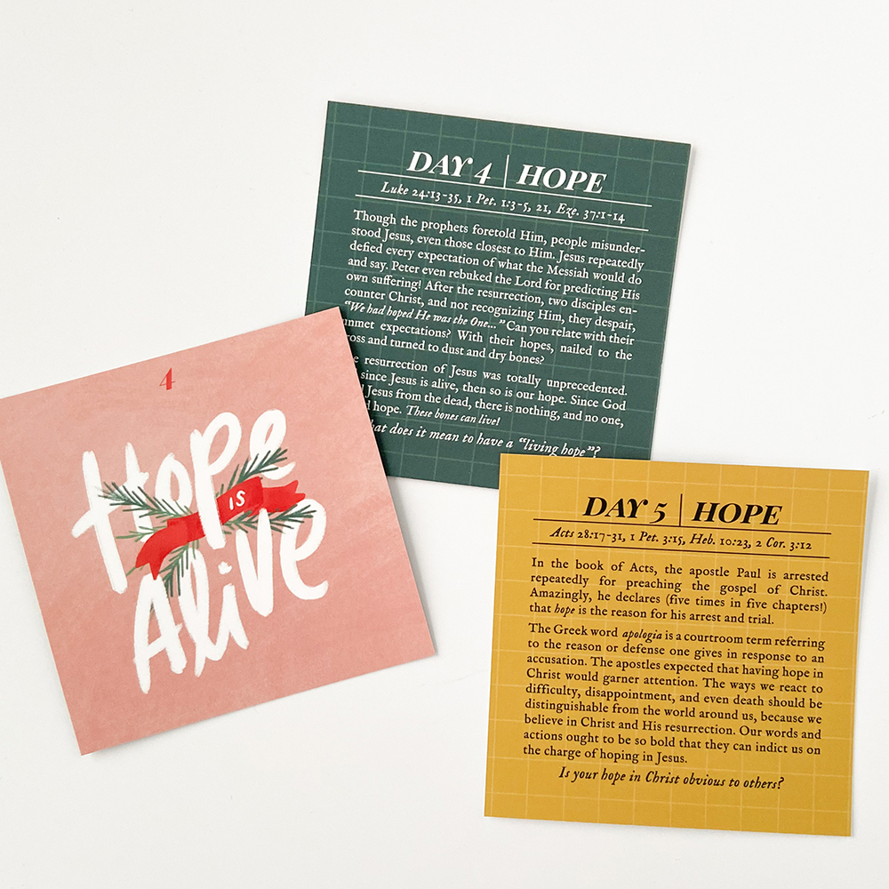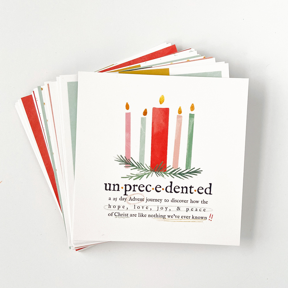 This set of 25 double-sided cards by Taylor Rauschkolb explores four themes of Advent: hope, love, joy, and peace. Our weary world is in desperate need of living hope, unconditional love, joy that abounds in suffering, and peace that draws us near to God and one another. Through daily Bible readings and devotions, discover how these themes, just like our Savior, are unlike anything we’ve ever known. But for these “unprecedented times”? They are everything we’ll ever need.