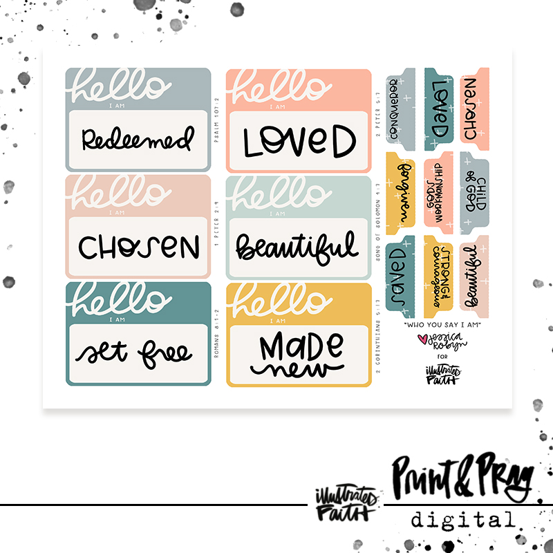“I started working on these and just kept coming up with more and more titles to fill in the tags. I was just so encouraged by all the titles and the verses that go along with each one and kept imagining how they could each be used and how they would encourage other ladies to be reminded what scripture says they are!” -Jessica Robyn